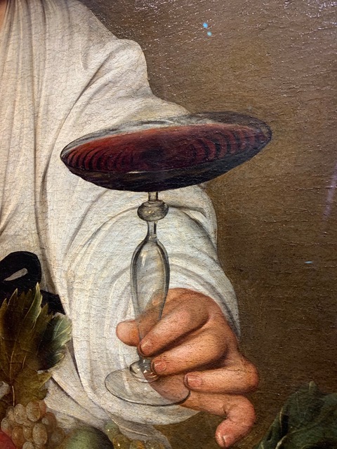 The Uffizi has few of his works, but it’s got his Bacchus — perhaps the wine world’s most famous painting. (See the detail above)