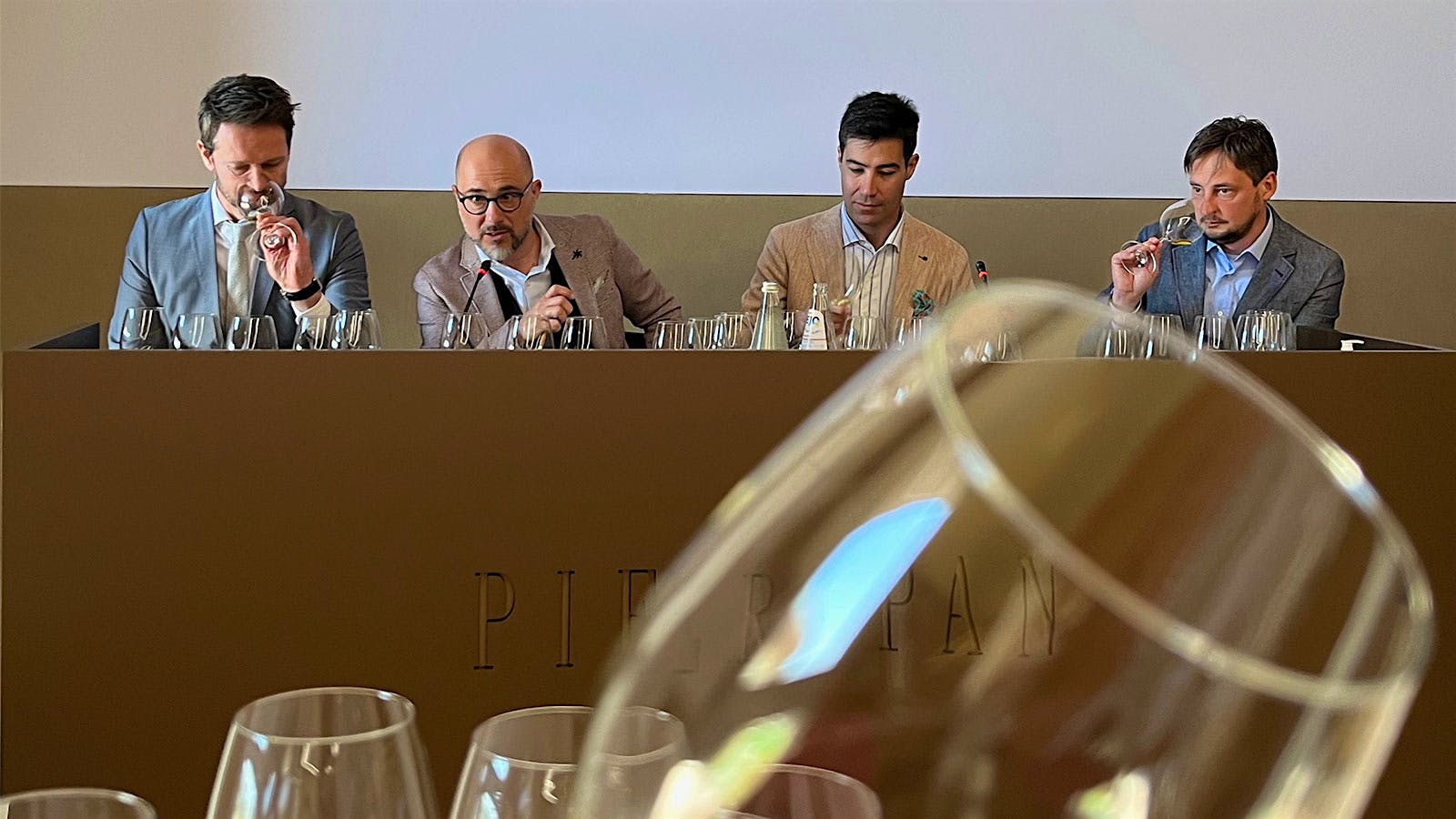 At Calvarino's 50th anniversary tasting, Leonildo Pieropan’s sons, Dario Pieropan (left) and Andrea (right) were joined on the panel by wine educators Filippo Bartolotta and Gabriele Gorelli.