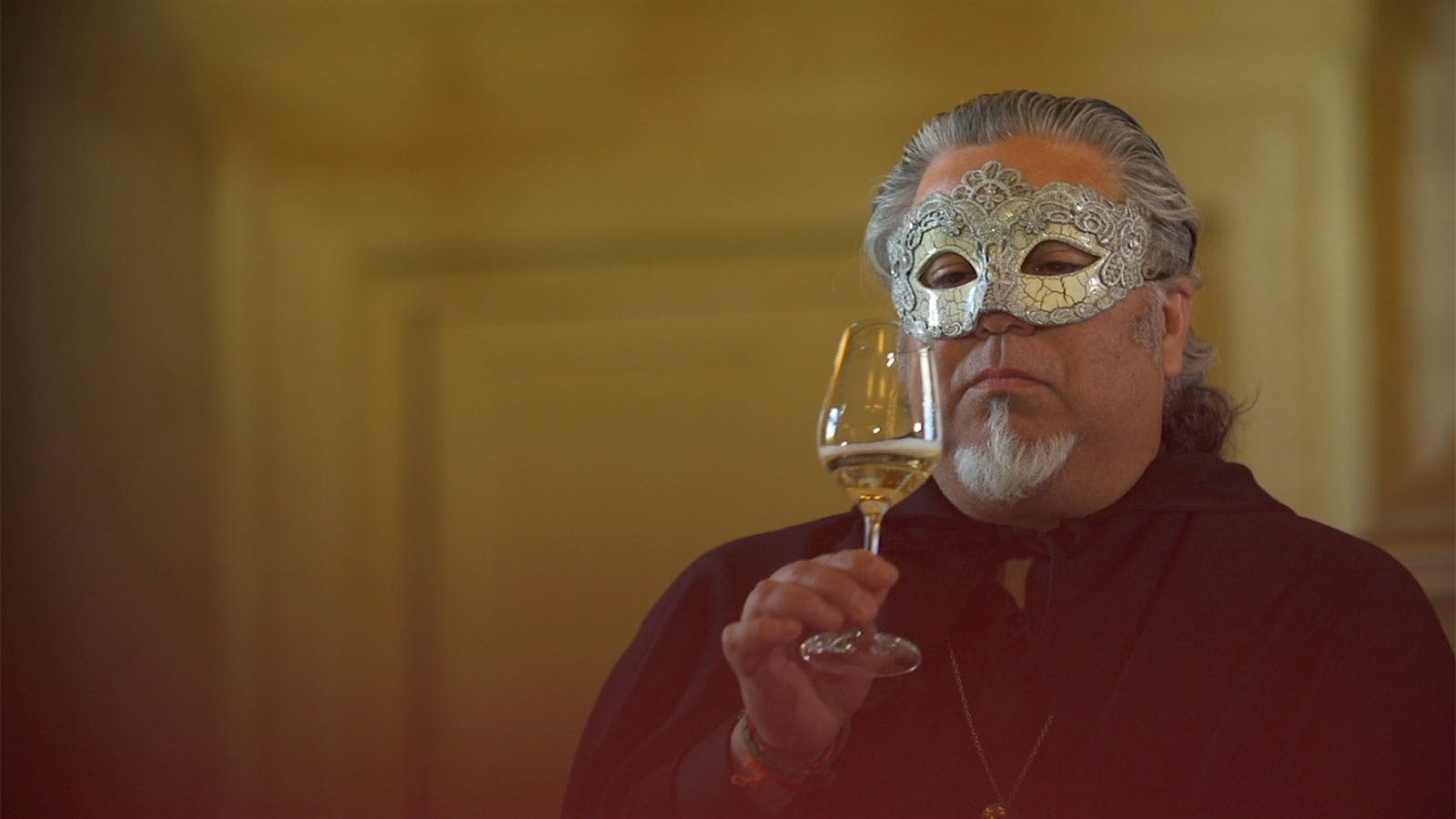 But when the ruse is exposed, Charlie must try a different ploy to enroll anonymously in the Duel of Wine, disguising himself as a Zorro-like “Mysterious Count.”
