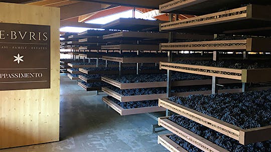 At the winery, grapes destined for the De Buris single-vineyard Amarone are air-dried for close to 4 months to concentrate the flavors.
