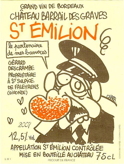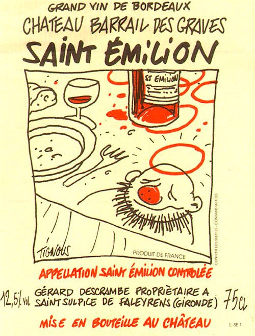 The cartoonists' careers as label designers began in the early 1970s, when Descrambe and his brother, Christian, took over from their father at Chateau Barrail des Graves, in the St. Emilion appellation.