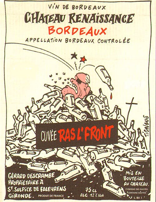 "They were my friends," explains Bordeaux winemaker Gerard Descrambe, 65. For more than 40 years, Descrambe commissioned Charlie Hebdo cartoonists and others to make eye-catching labels that varied from drunken to suggestive to sexually explicit humor. "Their spirit was to laugh at everything and expose the biggest bullshit in the world. And they were killed by the biggest act of bullshit."