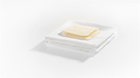 As the server spoke, I realized that this square was the cheese. Not just any cheese, but a cheese that seemed to have been formed into a light edible textile (with the help of rice starch).