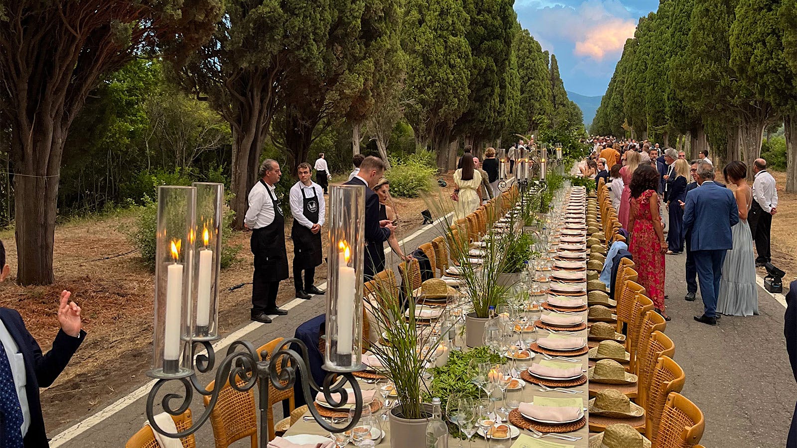 I have been to many bacchanalias, but what was so impressive about this one was the simple elegance and audacity of it: outdoor dining along the 19th-century Viale dei Cipressi, lined with more than 2,500 cypresses. And to top it off, there was no tent!