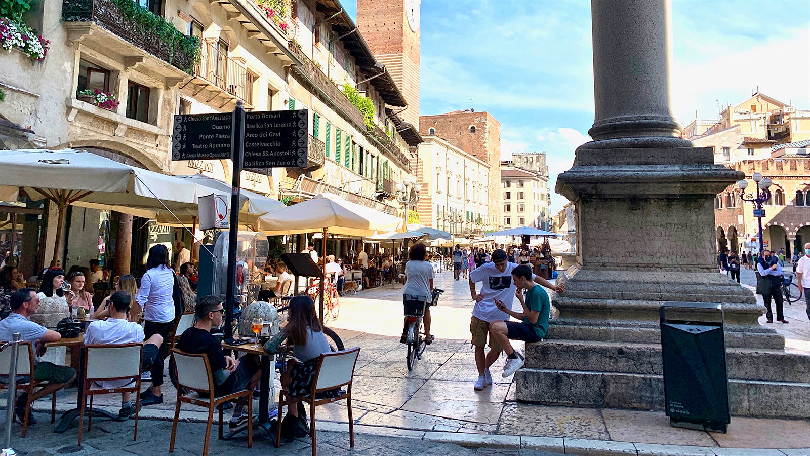 “The customers who are coming out are more relaxed,” says Gianpaolo Spinelli, manager of Verona’s historic Caffè Dante Bistrot, owned by the Tommasi wine family and situated on one of Verona’s most picturesque piazzas.