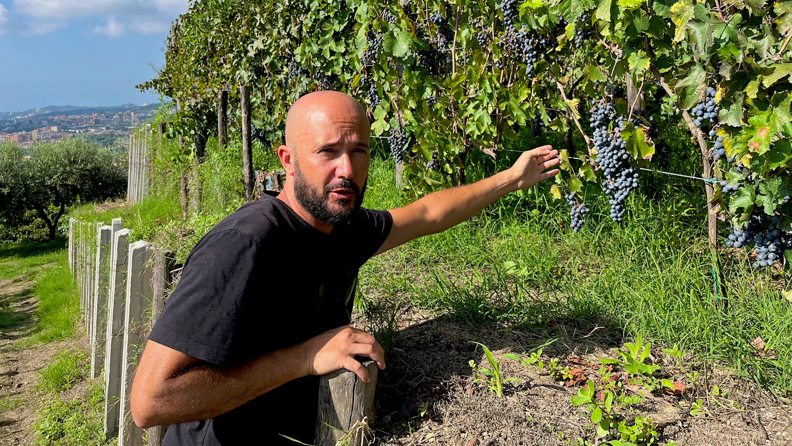 Winemaker Gerardo Vernazzaro of Cantine Degli Astroni checks on the Piedirosso grapes, which handle hot summers well and are typically are harvested in October.