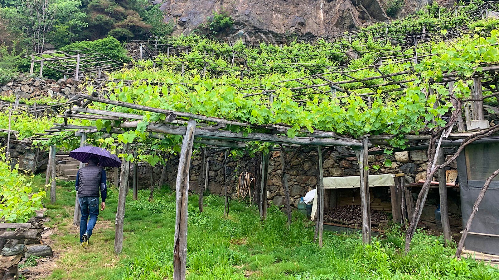 Today, a small, paved road climbs partly up the mountainside. But cultivation requires a lot of hiking on narrow, crooked stone stairs that jut from terrace walls.