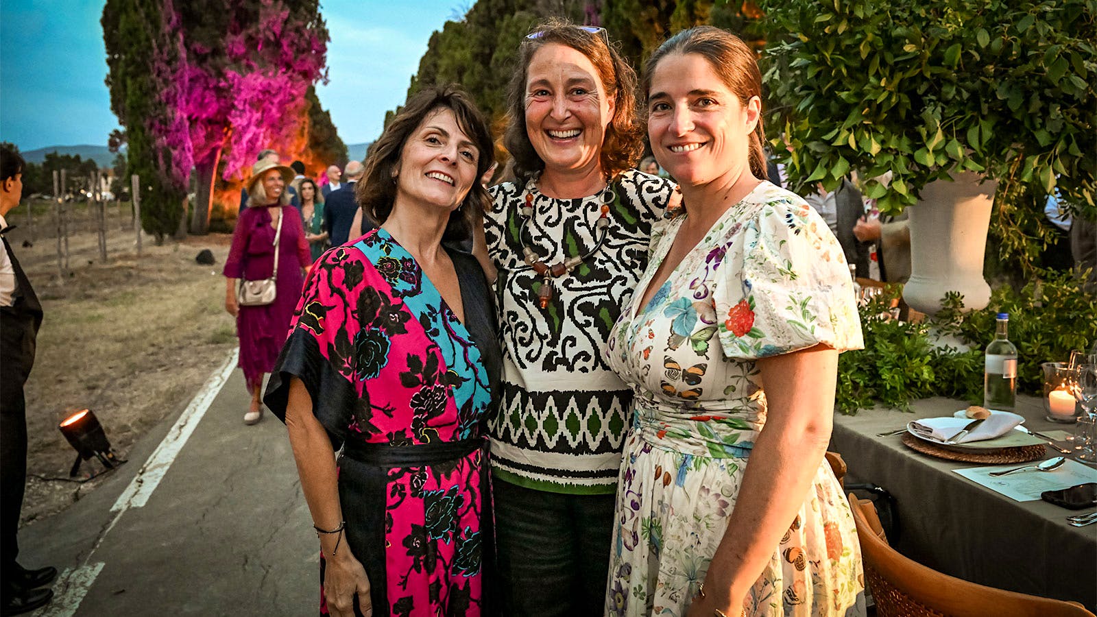 Albiera Antinori, president of the Bolgheri producers’ consortium, is joined at dinner by vice presidents Cinzia Merli (left) of Le Macchiole and Priscilla Incisa della Rocchetta (right) of Tenuta San Guido.