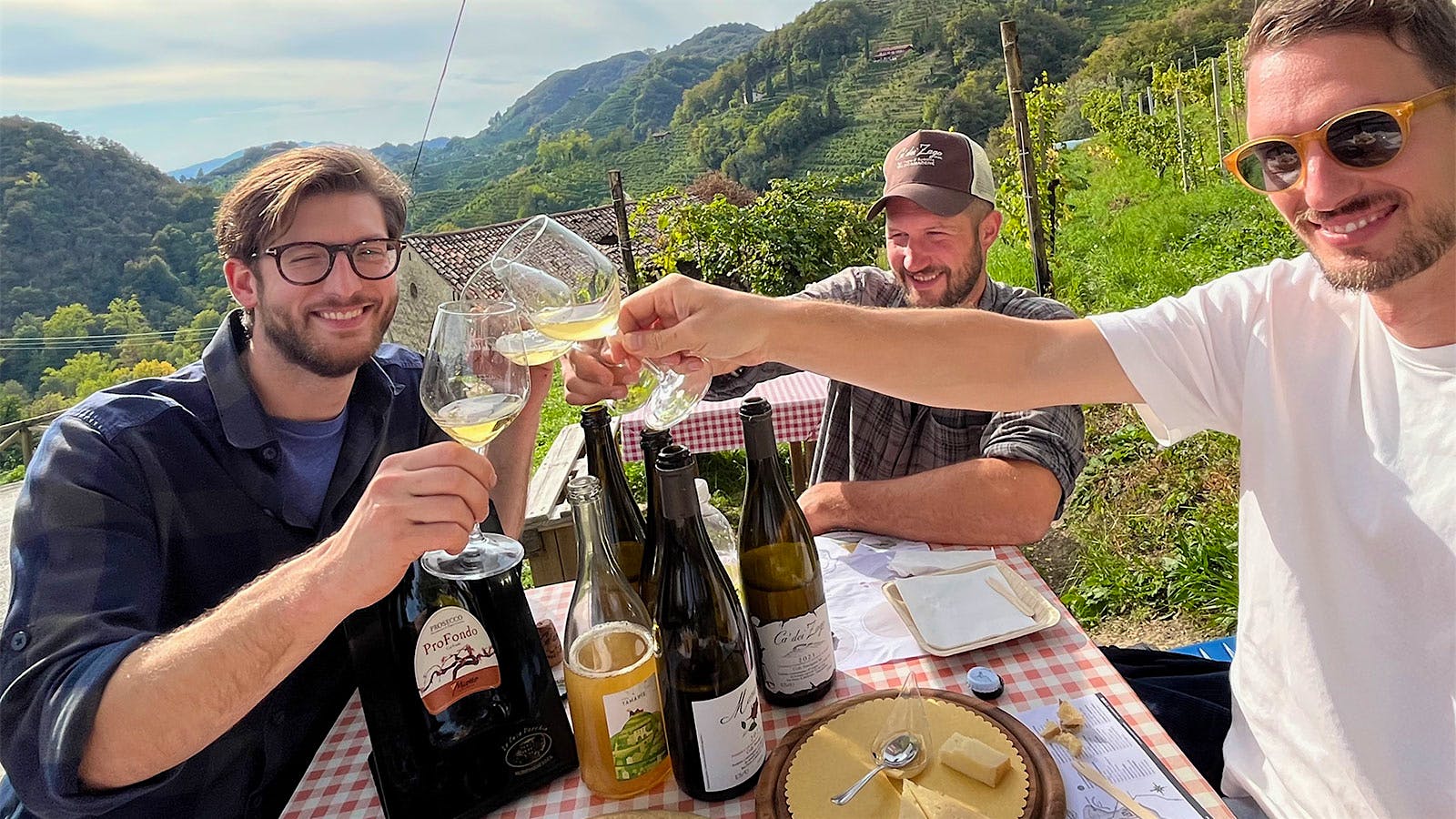 Col fondo Prosecco–producing peers Martino Tormena (left), Christian Zago (center) and Matteo Bisol.
